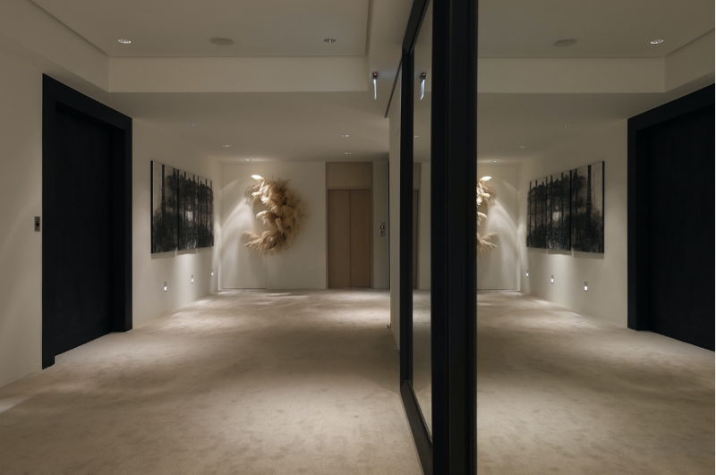一步入此空間,視覺可展望延伸到廊道底部,透過穿透的設計,隱約的玻璃隔間拉門,將空間巧妙隔出。同時,也帶入局部木紋質調提點溫潤感,材質的變化讓空間感受變化多端。完善的機能配置與聰明的設計美學,俐落且無違和地於各區域相融合。整體空間的優雅閒適與居家生活有所共鳴而延伸,留出每個空間該有的調性與質感。以城市美學為題,注入飯店質地般精緻服務,串連起每一個生活的細節,刻畫出最美好的居所。