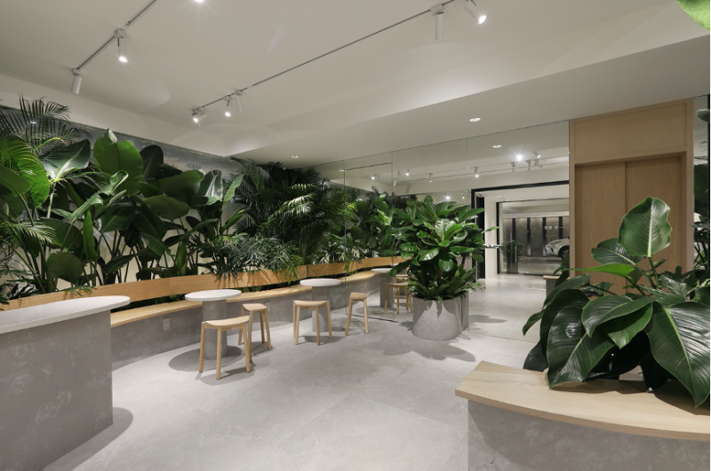 本案為飯店式風格潮居,將木材與綠色植物以及豐富的燈光相互結合,創造出優雅質感的設計。層層向上堆疊的山形方盒子,格柵線條的絮語,榫接十字意象工藝風格,跨界融合了傳統木建築與現代簡約設計。將空間感有效釋放、增加公共領域範圍,並在半開放的規畫之中,使空間與空間的連結互動感提升,劃出場域界線,並引導光源,讓光可自然流動於各個角落。以小坪數的深簡與娟秀交流融合,創造出生活不一樣的價值眼界。